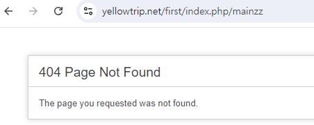 > [도메인/index.php/mainzz] 를 쳤을 때 (없는 컨트롤러이기 때문에 404가 뜸)