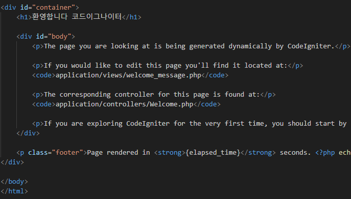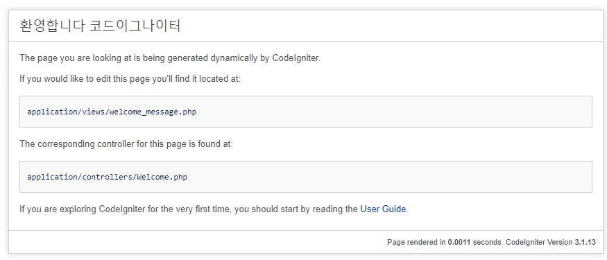>웹브라우저에 도메인, 도메인/index.php, 도메인/index.php/welcome 을 치면 각각 같은 화면이 호출된다.