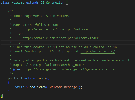 application/config/routes.php> 라우팅은 url 체계를 만드는 중요한 역할을 한다.> default_controller : 도메인 (또는 내가 ci를 설치한 폴더)을 호출했을 때 가장 첫 번째로 뜨는 컨트롤러를 설정해주는 것.> 라우트에서 컨트롤러를 호출하고, 컨트롤러에서는 뷰를 호출한다. > 컨트롤러 이름과 호출하는 컨트롤러의 파일이름은 동일해야 한다.(파일 이름의 첫 문자는 대문자로)$route['default_controller'] = 'welcome';application/config/routes.php 에서 welcome은 컨트롤러 명,application/controllers/Welcome.php 처럼 welcome(x) / Welcome(o) >웹브라우저에 도메인, 도..